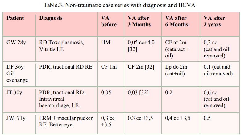 Table.3. Non-traumatic case series with diagnosis and BCVA
