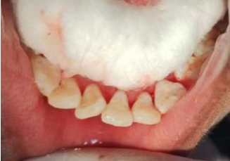 A 20-year-old female reported to the Department of Periodontology and Oral Implantology, Hazaribag college of dental sciences and hospital with a chief complaint of mobility of lower front teeth following fall injury. Medical history was non-contributory. She was conscious and well oriented with time, place and person during examination. Clinically, there was grade ii mobility in 31,41 with tenderness present. Radiographic examination revealed periodontal ligament widening irt 31,41. Written informed consent was taken after explaining about her condition, different treatment options, the nature of the procedure, the prognosis of teeth and the required follow up. Treatment began with non-surgical phase. Proper