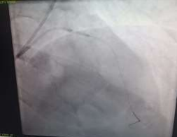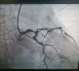 60 year old male known diabetic, hypertensive and dyslipidaemic presented with unstable angina, Coronary angiogram revealed Mid RCA pre crux lesion of 80-90% stenosis and PDA and PLV arising from Mid RCA (Fig 1). It was an angulated bend post bifurcation and hence Fielder FC wire support was taken to easily manipulate the vascular bifurcation (Fig 2) and successful PTCA+ stent to Mid RCA was done with 3x24mm Yukon choice flex stent (Fig 3& 4). TIMI III flow was achieved and post procedure period was uneventful.