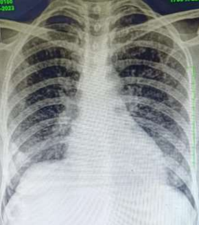Figure 2- Chest X-ray & Computed tomography of thorax showing miliary nodules in lungs