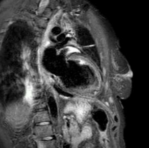 Image 6. CMR- homogeneous LGE of the intracardiac mass