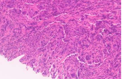 - Biopsy from the right iliac bone showing metastatic carcinoma.
