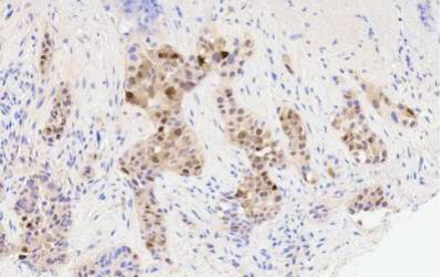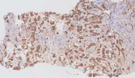 Fig.2: Iliac bone, IHC of pan-CK reflecting an epithelial origin.