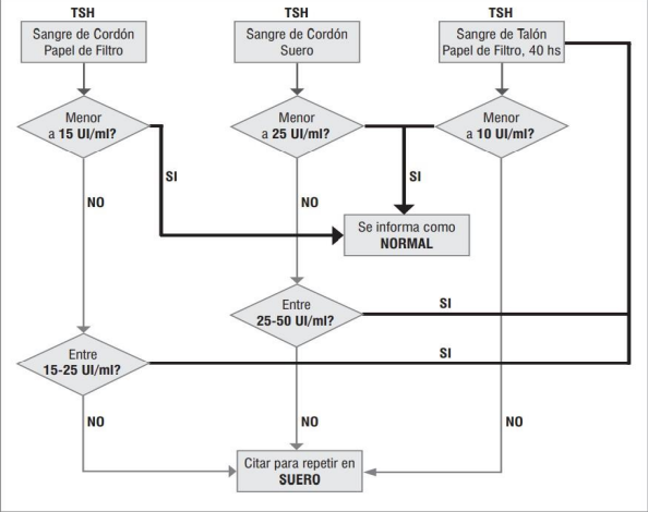 An abnormal result in any of them must be followed by confirmation in serum by determining TSH and FT4. Figure 1 shows the algorithm taking into account count the different samples.