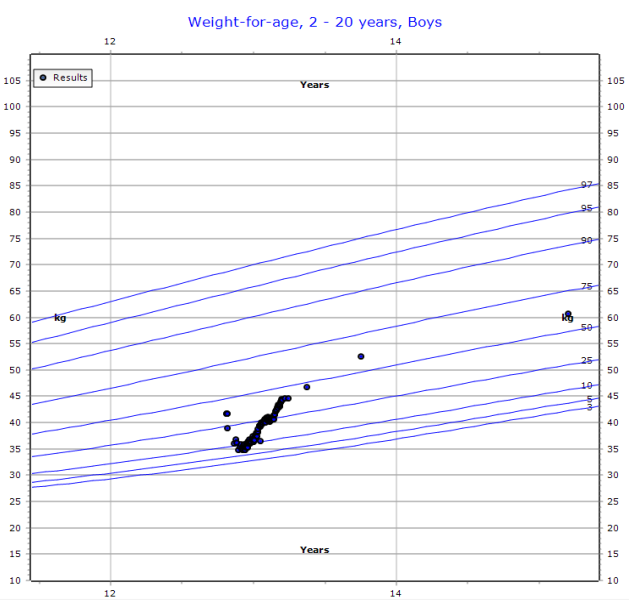 Image 3: CDC weight for age chart tracking our case’s clinical course through recovery