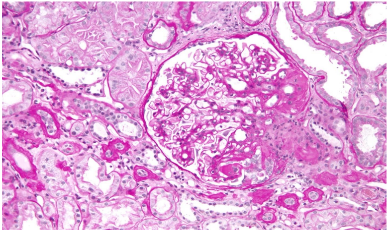 Fig 4: kidney with focal segmental glomerulonephritis