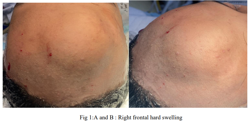 Fig 1:A and B : Right frontal hard swelling