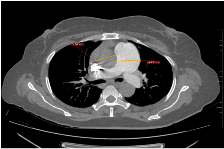 Fig 1: Ct Chest Showing Dilated Main Pulmonary Artery With Reversal Of Aorta Pulmonary Ratio