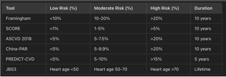 Conclusion: Despite advancements in cardiovascular risk assessment, no single tool is universally applicable due to population-specific variations and differences in predictive accuracy. A tailored approach, integrating validated tools and patient-specific factors, is essential to improve risk prediction, encourage compliance, and reduce global CVD burden. Clinicians must adopt a holistic strategy incorporating lifestyle and therapeutic interventions to optimize outcomes.