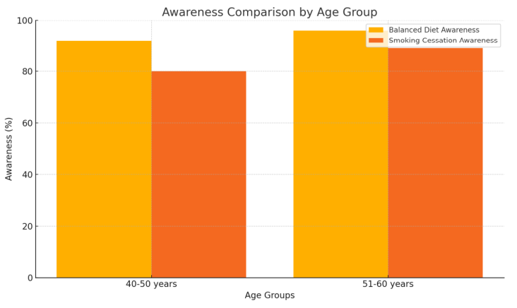 While the general awareness levels were commendable, the findings revealed a gap in understanding key preventive measures, specifically the importance of smoking cessation. This gap suggests a need for workplace health programs tailored to address behavioral risks, such as smoking and sedentary lifestyles. Educational campaigns emphasizing the integration of lifestyle changes with routine medical check-ups can improve health outcomes.