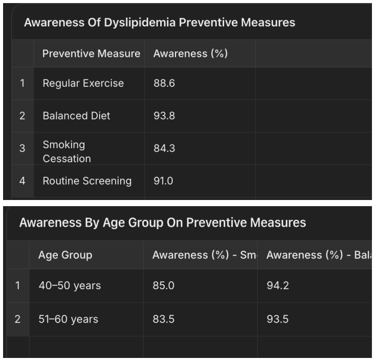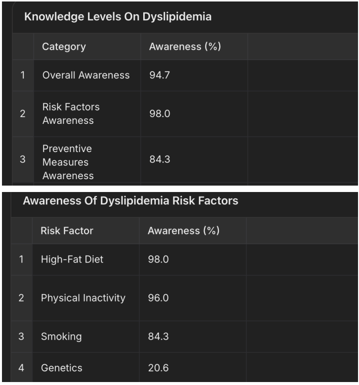 1. Awareness Levels of Dyslipidemia Risk Factors and Preventive Measures: