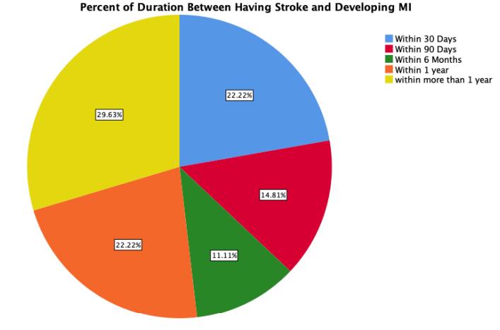 Figure 1: Percentage of duration between having a stroke and developing MI.