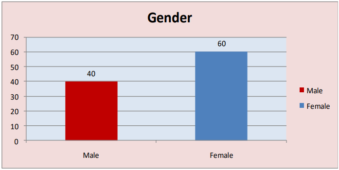 From the table II & figure 2, the bar diagram give the gender status of samples. 40.00% (24) of respondents were the male, and 60.0% (36) of respondents were the Female staff nurses who participated in the study.