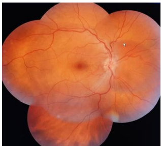Fig 3: Post op fundus picture showing well attached retina