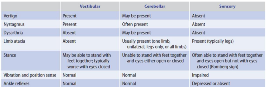 Characteristics of Vestibular, Cerebellar, and Sensory Ataxia. (6)