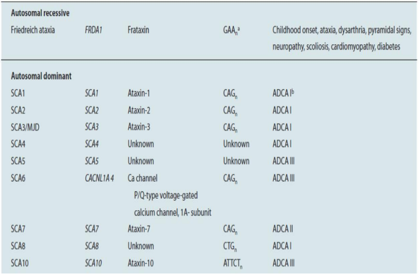 Types of Spinocerebellar ataxia: