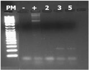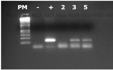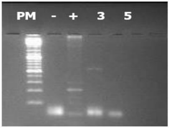 The IGF PCR demonstrated that the IGF’s mRNA is present in samples 3 and 5. Therefore , the expression of IGF at the transcriptional level in amniotic cells is confirmed.