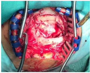 Fig 10: Cranioplasty with mesh and acrylic bone cement