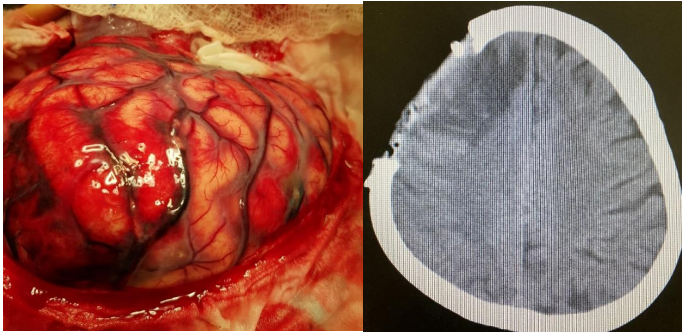 Fig 2 &3: Post head injuries with massive brain contusion so Decompressive craniectomy done