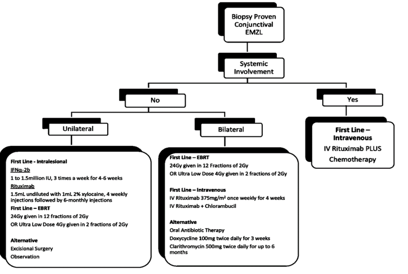 Keywords: Conjunctival lymphoma, Extra nodal marginal zone lymphoma, Mucosa-associated lymphoid tissue (MALT), Conjunctival MALT lymphoma, Systemic therapy, Rituximab, Ocular lymphoma, non-Hodgkin lymphoma, Conjunctival neoplasms.