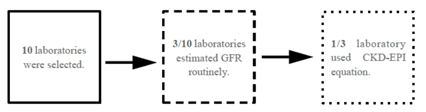 7 of 10 laboratories included in this study do not estimate the GFR. These points are "the models", the reality on the ground and contribute to the late referral to nephrologists of patients with AKI or CKD.