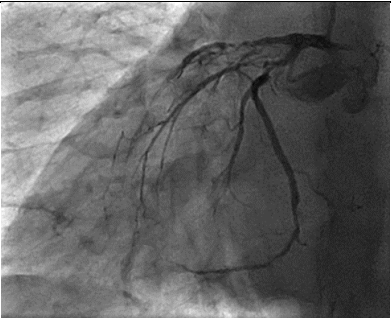 Figure 4 LAO cranial view showi ng 100% occluded LAD