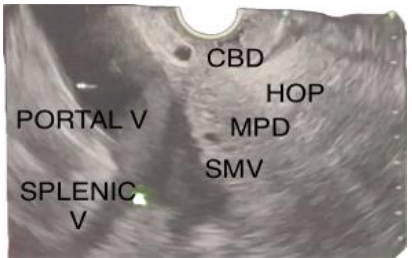 This anatomical view is important for orienting during procedures and for identifying pathology in the pancreaticobiliary region. This peculiar appearance is a common sight on scanning from the Duodenal bulb but the terminology has not been attributed.
