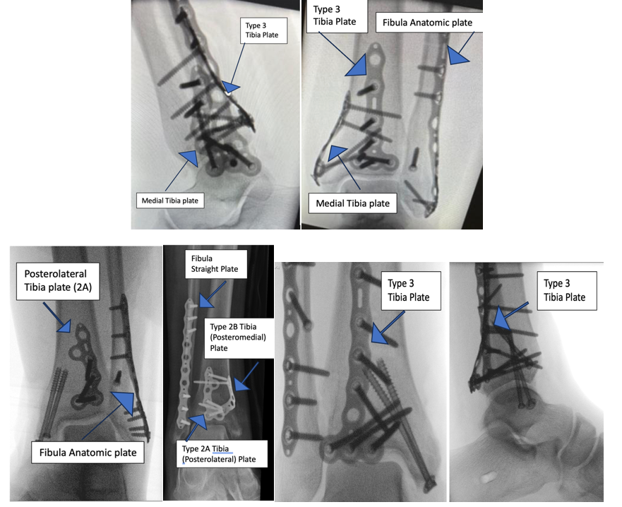 Fig 4 Showing Pre-op and post op Imaging of different trimalleolar fractures and their fixation using fragment specific Plates.