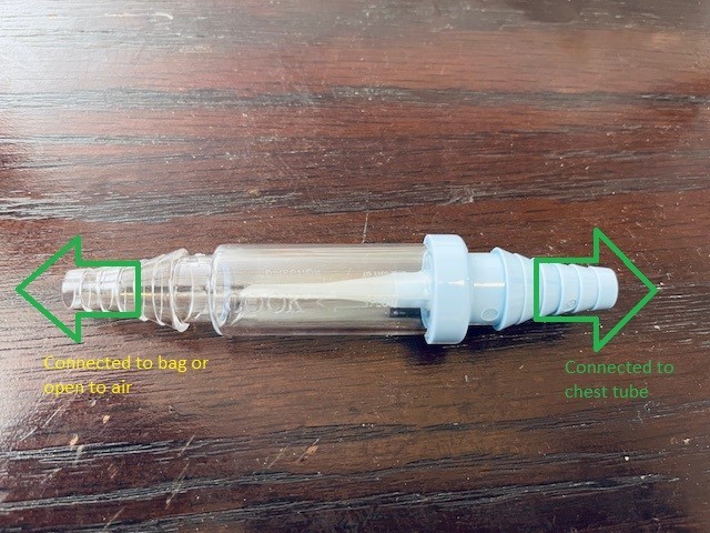 To facilitate outpatient management, various drainage systems have been developed to allow pleural decompression while preserving mobility and reducing infection risk. Among the most widely used devices is the Heimlich valve, a one-way flutter valve that prevents air reentry into the pleural space while allowing egress of air and fluid. Although effective, its cost and availability can be limiting factors, especially in underdeveloped or rural healthcare settings.