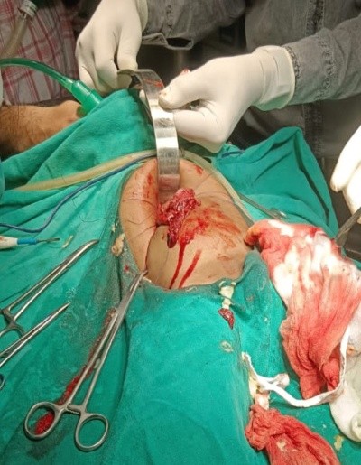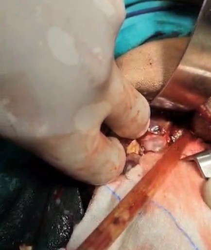 Figure 4 Intra Operative: Showing small postpyloric Doudenal Perforation