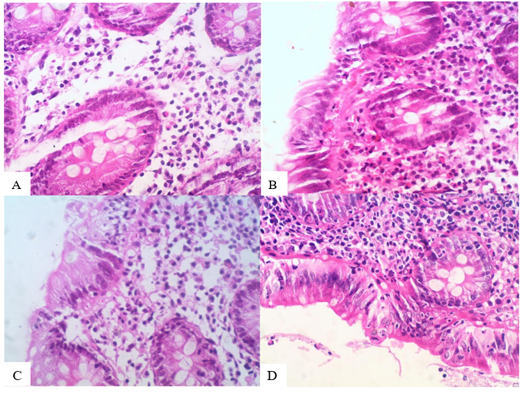 This prospective study included patients who presented to their clinician with gastrointestinal symptoms such as diarrhea, abdominal pain, constipation, and/or distension. All patients underwent clinical evaluation, endoscopic examination, and histopathological analysis of colonic biopsies. All colonic biopsies were examined at the First Medical Lab from 2018 to 2024 by a single pathologist, HAF. The inclusion criteria were the presence of gastrointestinal symptoms including diarrhea, abdominal pain, constipation, or distension and histopathological findings indicating minimal changes in the colonic mucosa. The Clinical exclusion criteria were patients with a history of chronic inflammatory bowel disease (e.g., Crohn’s disease, ulcerative colitis) or patients with known infections (bacterial or parasitic), diverticulosis, or other known gastrointestinal conditions. Histomorphological exclusion criteria involved all cases with moderate to severe increase in chronic inflammatory cells, moderate to marked acute cryptitis or ulceration, moderate to marked diffuse glandular distortion (drop or branching).