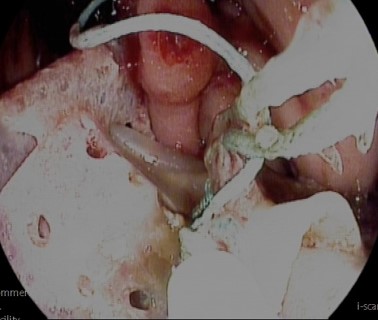 Figure 3: Surgical sutures cut using endoscopic instruments