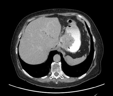 Figure 6: hanges consistent with Nissen fundoplication, showing thickening and inflammatory alterations. No contrast extravasation or extraluminal gas bubbles observed.