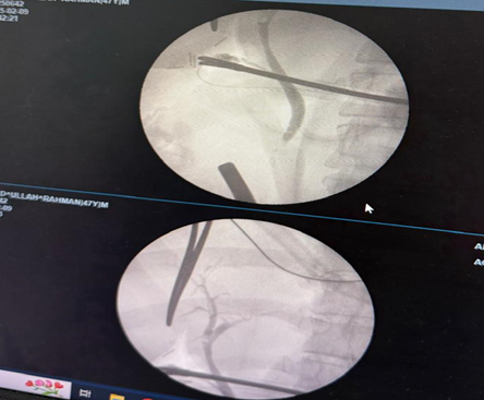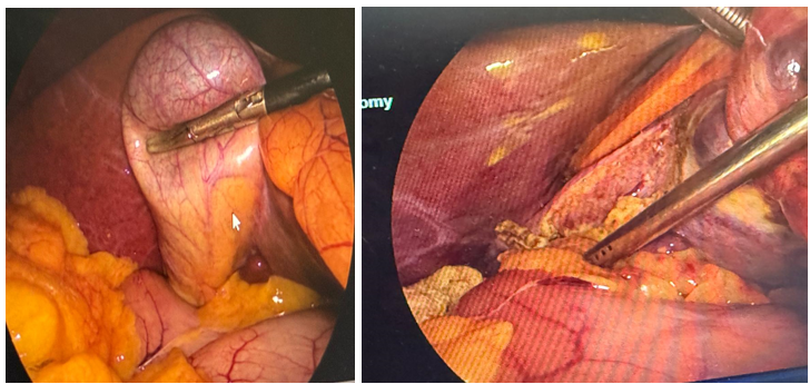 The patient was scheduled for elective laparoscopic cholecystectomy. Intraoperatively, the gallbladder was found to be located to the left of the falciform ligament, attached to segment III of the liver, consistent with sinistroposition. The standard epigastric port was positioned slightly lower and more to the left to improve access and ergonomics. Due to altered anatomy A retrograde fundus-first dissection technique was employed. The gallbladder was mobilized from the left lobe and repositioned toward the right to approximate standard anatomical orientation. Dissection of Calot’s area was then performed with identification of the cystic duct and artery. A trans-cholecystic intraoperative cholangiogram was performed to clearly delineate biliary anatomy .So cystic was clearly identified and confirmed. Followed by clipping of cystic duct and artery and divided. the patient was discharged the next day and Postoperative recovery was uneventful.