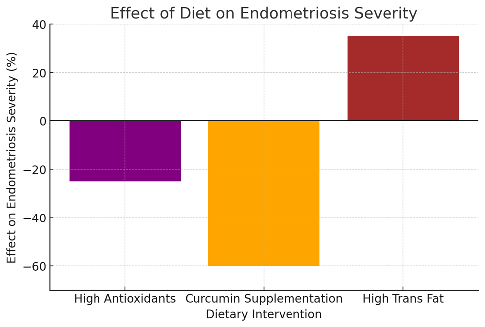 Graph 2: Effect of Diet on Endometriosis Severity (Line graph comparing dietary interventions and symptom improvement.)