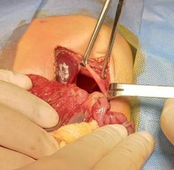 For surgical resolution, the patient's hemodynamic stability must be considered when deciding when to perform the procedure. (16) Surgical correction involves relocating displaced organs and closing the defect. It is generally performed by an open procedure. Most defects are primarily repaired (60-70%), while in more severe cases (and larger defects), a patch, which can be absorbable or non-absorbable (polytetrafluoroethylene), is used. (17)
