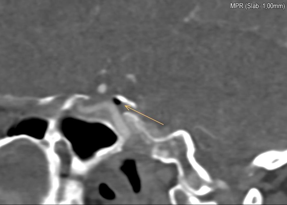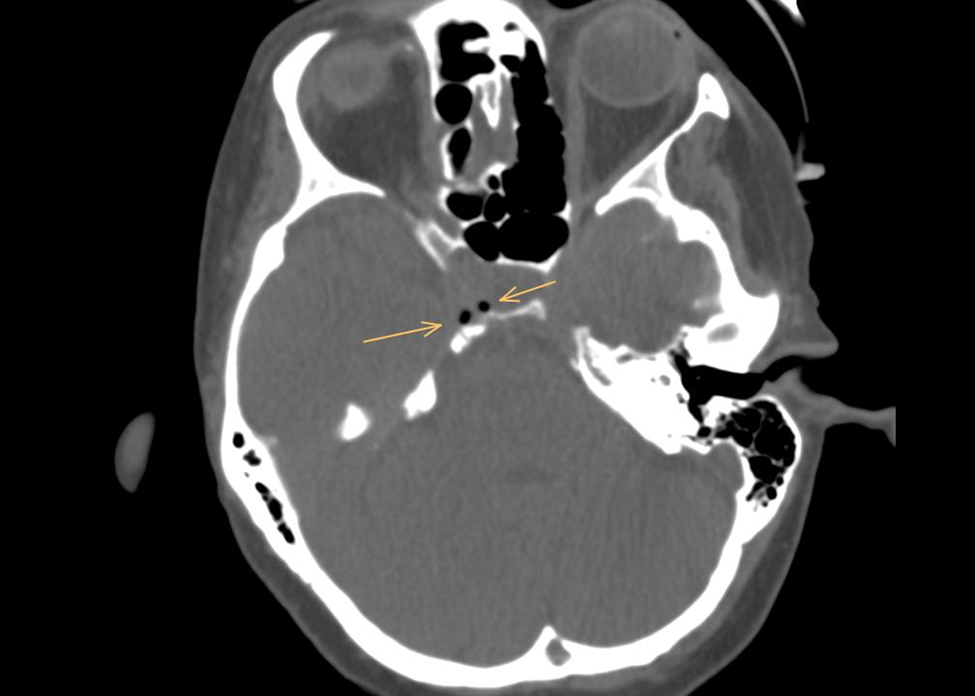 Neurovascular Assessment: An angiographic CT of the skull conducted during the neurological evaluation revealed the presence of air emboli in the cavernous sinus. Notably, echocardiographic assessment ruled out the presence of a patent foramen ovale (PFO), leaving the etiology of the air embolism due to several mechanisms unclear.