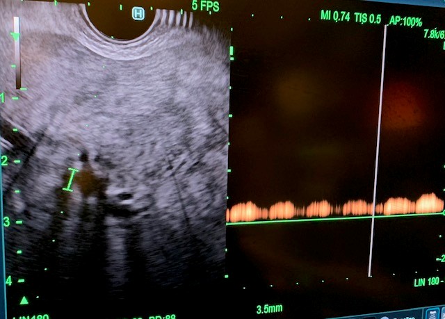 Figure 6: Doppler of the left portal vein to ensure hemostasis post-manometry.