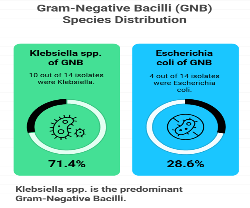 Antibiotic susceptibility was assessed using the Kirby-Bauer disk diffusion method. Test organisms (adjusted to 0.5 McFarland standard) were inoculated onto Mueller-Hinton agar (MHA) plates. Antibiotic discs —(Gram positive: Penicillin, Oxacillin, Cefoxitin, Ciprofloxacin and Erythromycin) Gram Negative (Ampicillin, 1st 2nd and 3rd generation Cephalosporin, Carbapenem, Beta lactam lactamase inhibitor)—were applied using sterile forceps. Plates were incubated at 37°C for 24 hours under aerobic conditions.