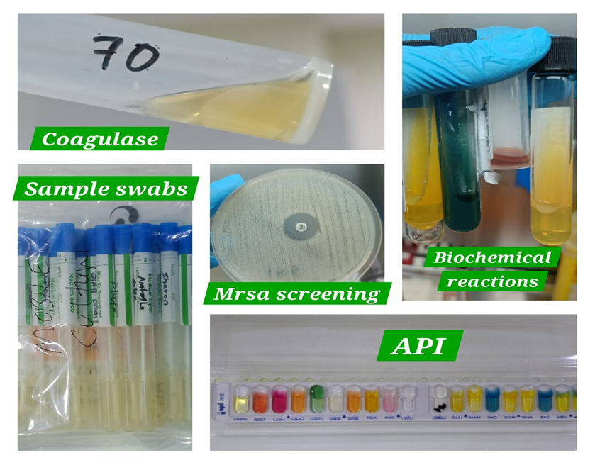 Bacterial colonies were identified using standard microbiological techniques, including Gram staining, selective media culture, biochemical profiling (TSI, Citrate, Indole, MR, VP, Urease, Coagulase, Catalase and Oxidase) and confirmed through API and bioMérieux software and latex agglutination.
