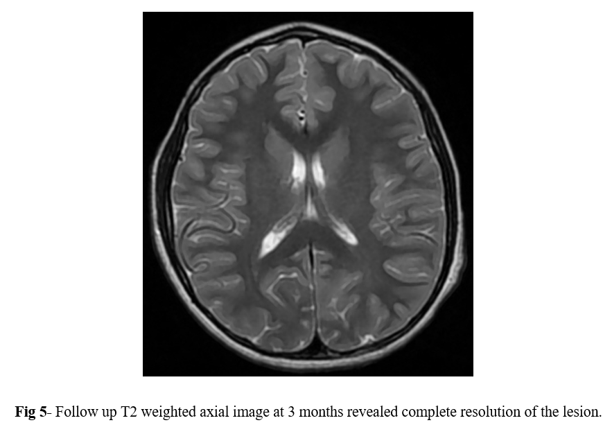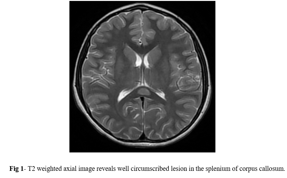 Reversible splenial lesion syndrome (RESLES) is a clinical-radiological syndrome of non-specific neurological symptoms with typical MRI findings of well circumscribed round to oval lesion displaying restricted diffusion and low ADC values in the splenium of corpus callosum. Various terms have been proposed for description of this entity including reversible splenial lesions, reversible splenial lesion syndrome (RESLES), Mild encephalopathy with reversible splenial lesion (MERS) and Cytotoxic lesions of the corpus callosum (CLOCCs) [1,2].